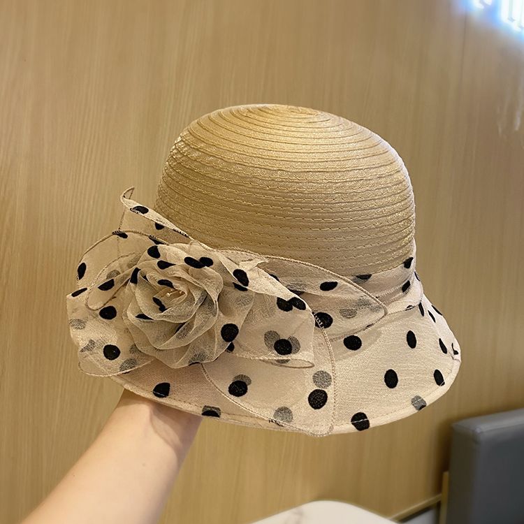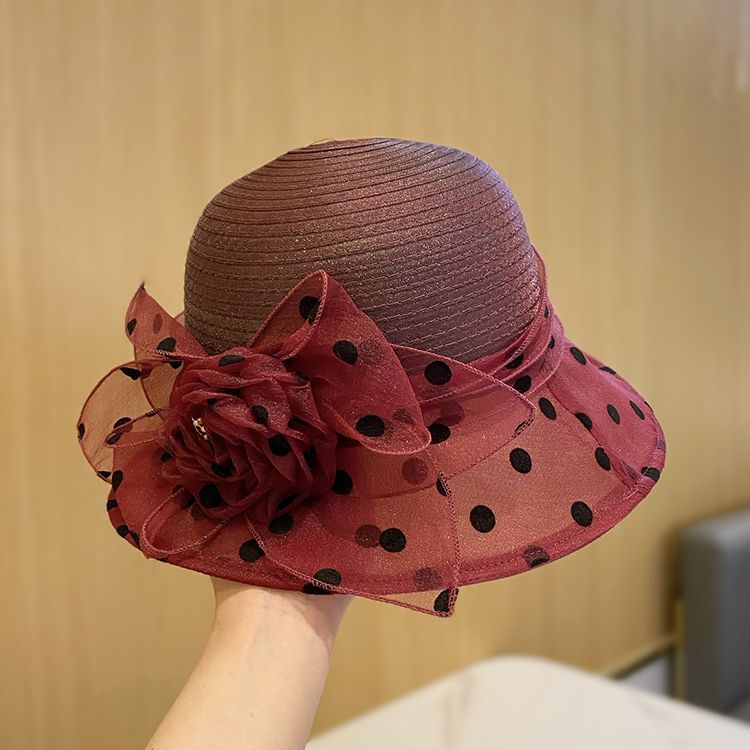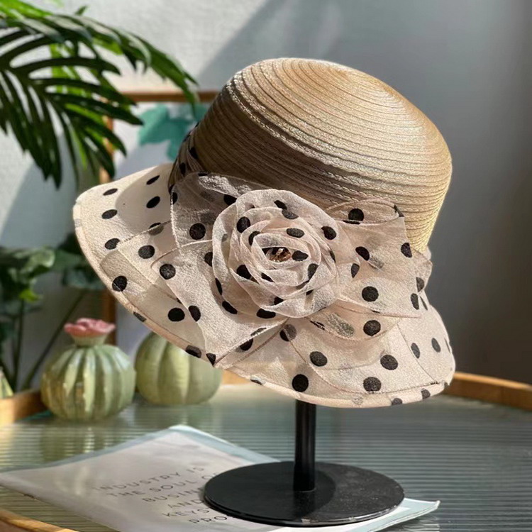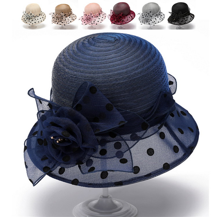 クロシェ 帽子 クローシュ ハット ドット フラワー 深め 小顔 日よけ パーティー オーガンジー レディース 母の日