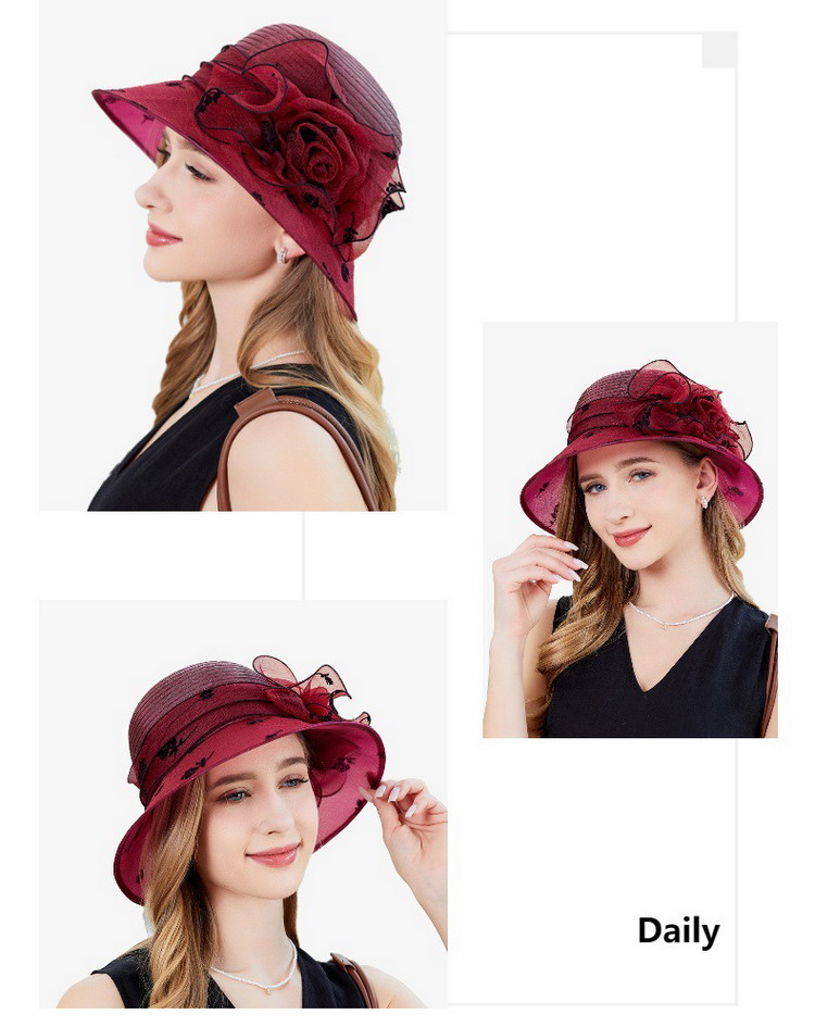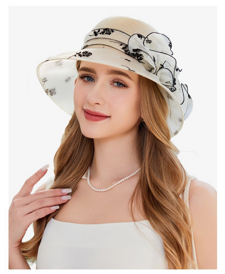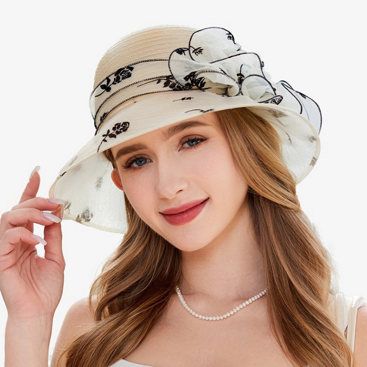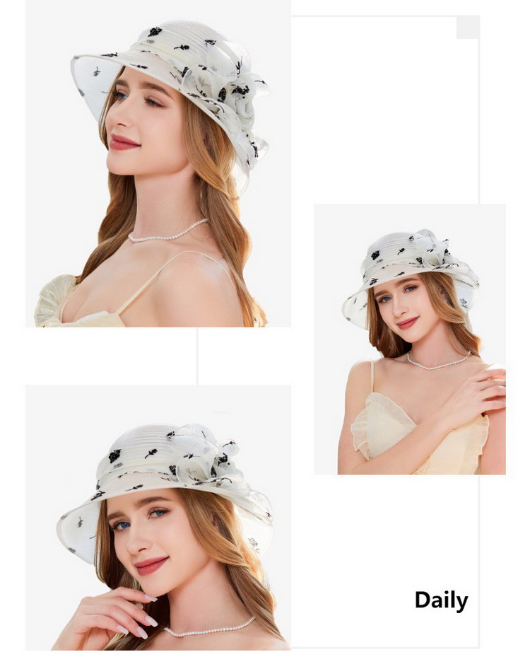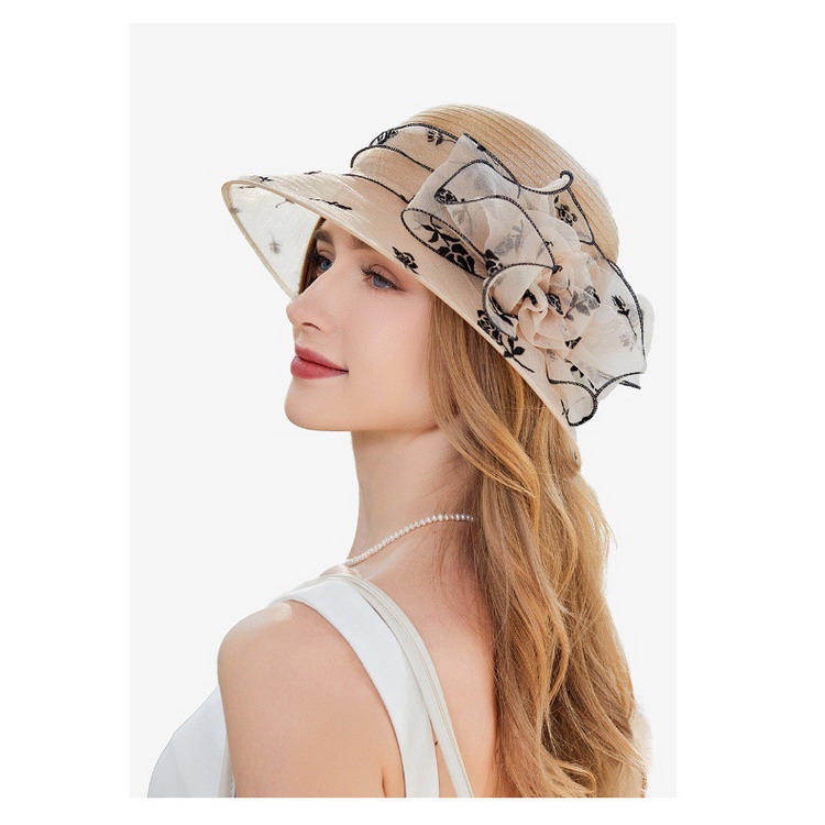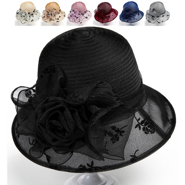 クロシェ 帽子 クローシュ ハット フラワー オーガンジー 深め つば広 日よけ パーティー リゾート レディース 母の日