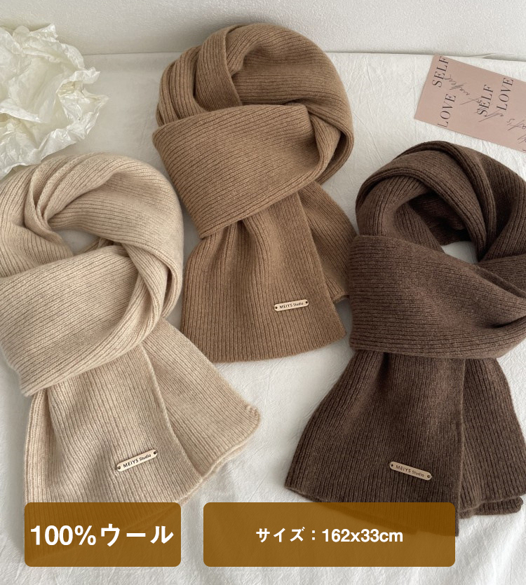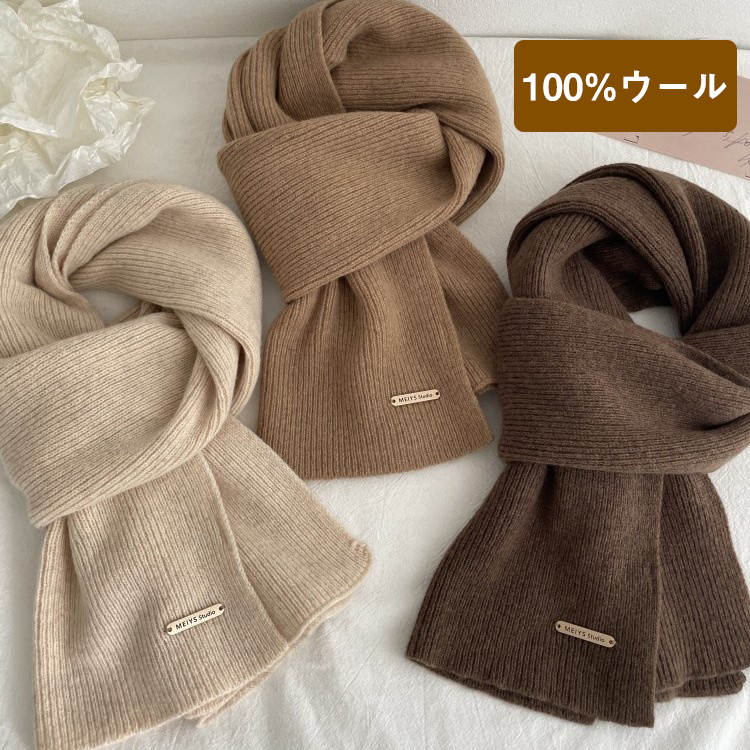 マフラー 100%ウール ニットマフラー 無地 秋冬 防寒 レディース メンズ