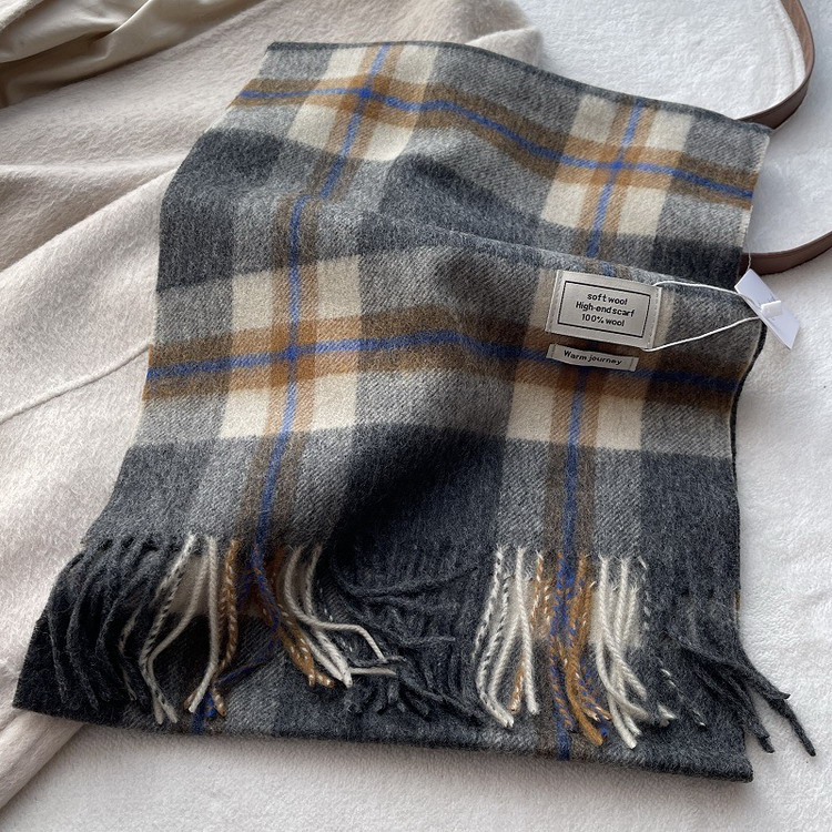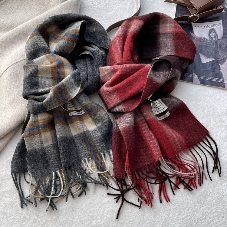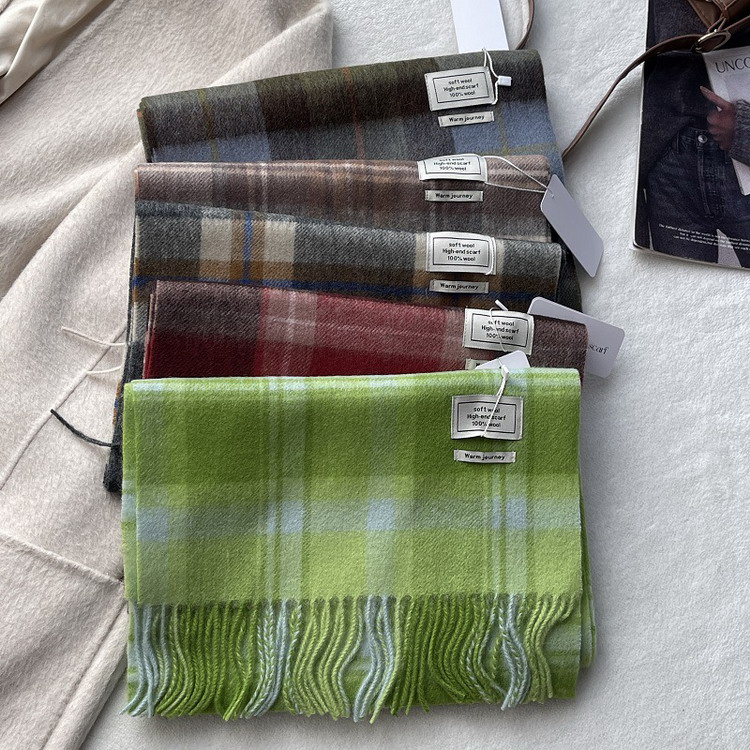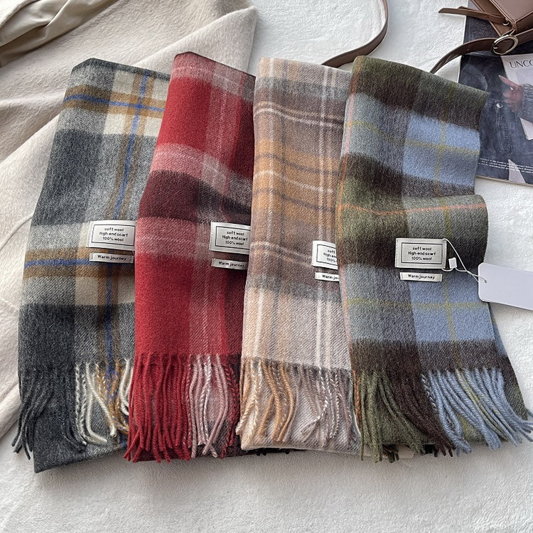 マフラー 100%ウール きれいめ チェック柄 フリンジ ショール 秋冬 防寒 レディース メンズ