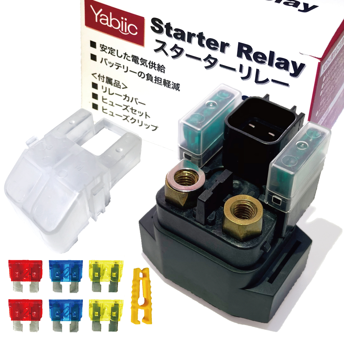 スターターリレー本体、ヒューズセット、ヒューズクリップ、リレーカバー付属。
