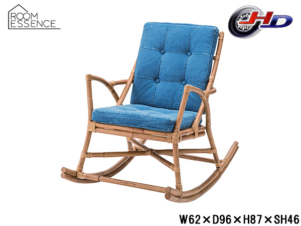東谷 ロッキングチェア ブルー W62×D96×H87×SH46 TTF-906 完成品 ラタン デニム 揺れる 座面 曲木 メーカー直送 送料無料