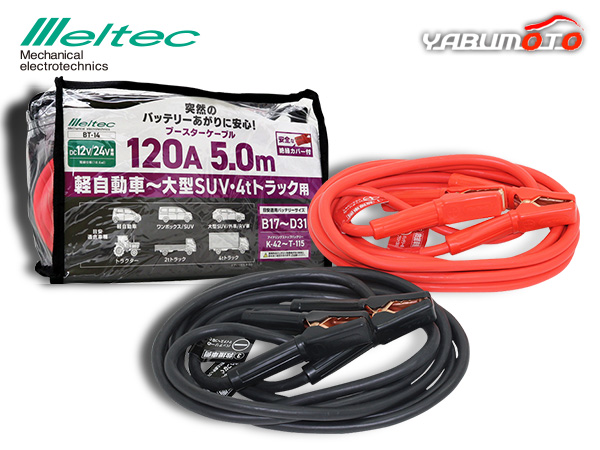 メルテック ブースターケーブル DC12V DC24V 120A 5m バッテリーケーブル 軽自動車 大型SUV 4tトラック 大自工業 BT-14