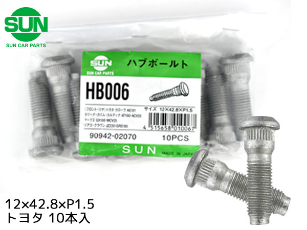 ハブボルト フロント 12×42.8×P1.5×14.3 10本 国産 SUN 参考車種 トヨタ カローラ クラウン など