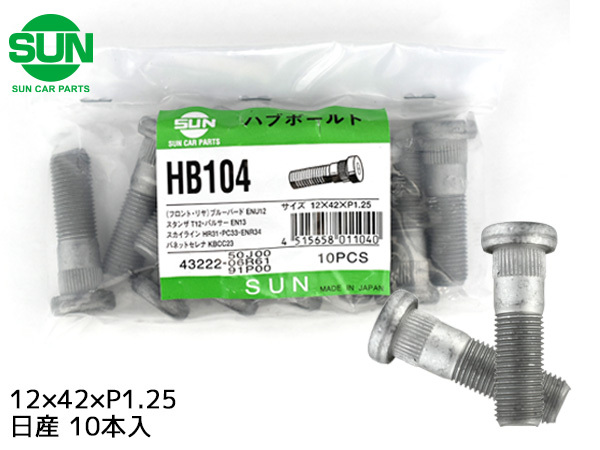ハブボルト フロント 12×42×P1.25×12.8 10本 国産 SUN 参考車種 日産 ブルーバード スカイライン セドリック など