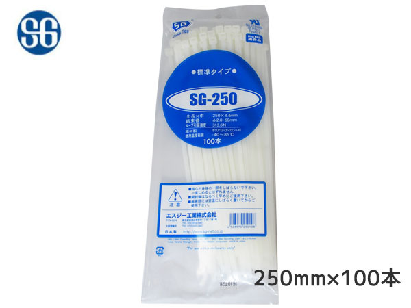 結束バンド ケーブルタイ タイラップ 白 250mm 100本 SG-250 エスジー工業
