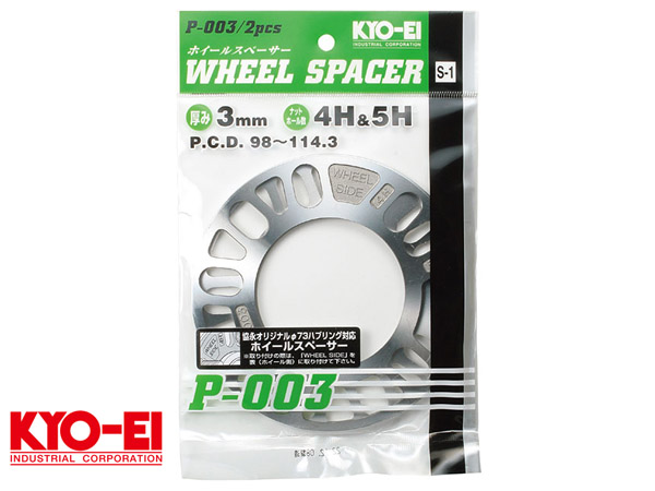 ホイールスペーサー 3mm 4穴 5穴 P.C.D.98〜114.3 2枚入 アルミ製 国産 ホイルスペーサー KYOーEI P-003-2P メール便 送料無料