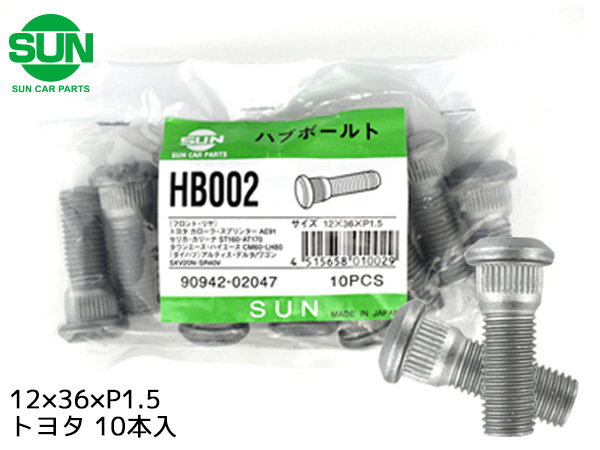 ハブボルト リア 12×36×P1.5×14.3 10本 国産 SUN 参考車種 トヨタ ヴィッツ bB チェイサー など