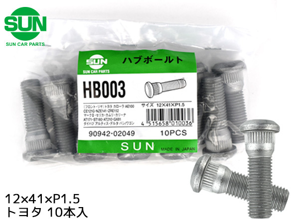 ハブボルト リア 12×41×P1.5×14.3 10本 国産 SUN 参考車種 トヨタ ライトエース トヨエース など