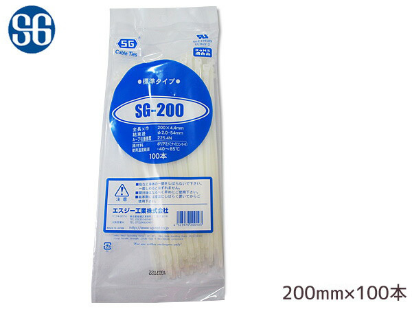 結束バンド ケーブルタイ タイラップ 白 200mm 100本 SG-200 エスジー工業 メール便 送料無料