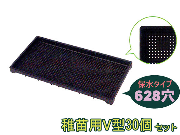 育苗箱 苗床 稚苗用V型 保水タイプ 水稲 628穴 60×30×3.7cm 30個セット 黒 ブラック アイカ aika 日本製 代引不可 配送不可地域有 法人のみ配送 送料無料