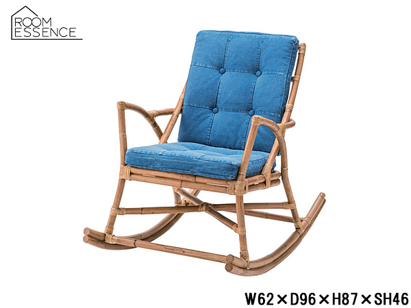 東谷 ロッキングチェア ブルー W62×D96×H87×SH46 TTF-906 完成品 ラタン デニム 揺れる 座面 曲木 メーカー直送 送料無料