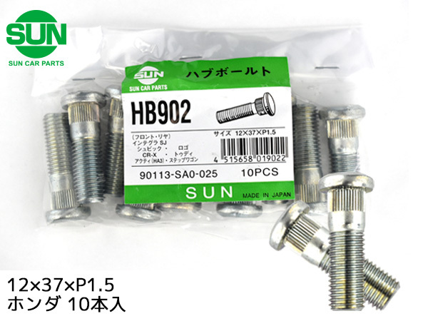 ハブボルト フロント 12×37×P1.5×12.3 10本 HB902 国産 SUN 参考車種 ホンダ シビック インテグラ 90113-SA0-025