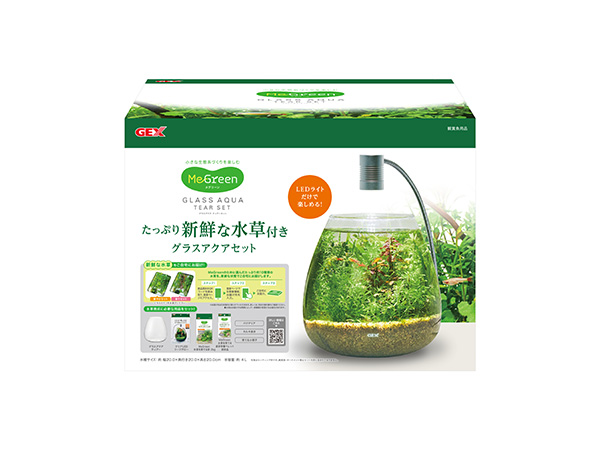 セット内容 水草(商品同封のQRコードからお申込み)、グラスアクアティアー、クリアLEDリーフグロー、MeGreen水草を育てる砂2kg、MeGreen水草を育てる底砂、栄養ペレット試供品、バクテリア、カルキ抜き、育てる小冊子
