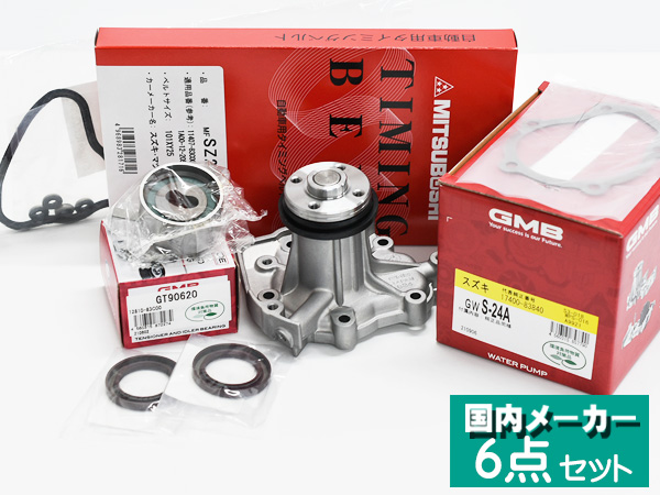 ジムニー JA11V JA11C 後期 タイミングベルト 6点セット ウォーターポンプ タペットカバー K.P 国内メーカー GMB 送料無料