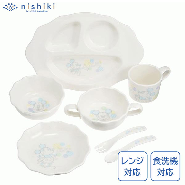 はじめての食器セット ベビー用 ミッキーマウス ディズニー 錦化成 / 日本製 レンジ対応 食洗機対応 子ども用 プレート スプーン フォーク コップ ギフト