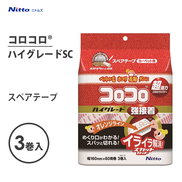 スペアテープ ハイグレードSC 強接着 (3巻入) ニトムズ C4312 / 日本製 カーペット対応 コロコロ 掃除用品 粘着式クリーナー 強力粘着テープ /