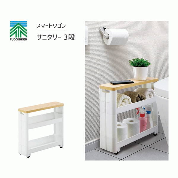 スマートワゴン サニタリー 3段 不動技研 F-2549 / 日本製 隙間収納 インテリア収納 木天板付き トイレ収納 /