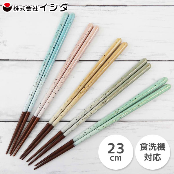 アースカラー 箸 23cm イシダ and NATURE / 日本製 食洗機対応 はし カトラリー 1膳 天然木 すべり止め加工 おしゃれ ブルー ピンク グリーン オレンジ グレー