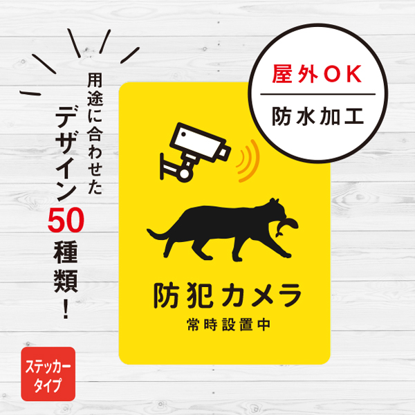 防犯カメラ設置中 猫ステッカー(イエロー) 防犯カメラ 屋外 ステッカー おしゃれ 対策 玄関 裏口 シール ドア ねこ 防水加工 雑貨