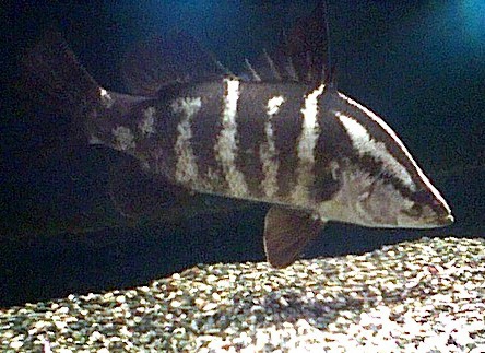 幼魚では不規則な横帯が入るが成魚になると銀白色に変わります。