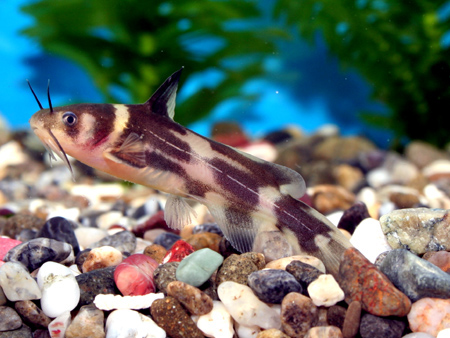 ナマズの様な体つきで8本のヒゲを持ち、体色は茶褐色〜黒褐色で脂鰭があります