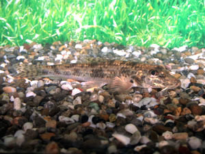 細長い体と、長く下に尖った吻が特徴で吻の下には1対のヒゲが有ります。