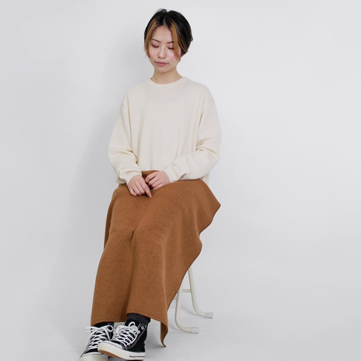 カシミヤの繊維はとても細くやわらかいため、素肌に触れてもチクチクしにくいのが特徴です。空気を含んだやわらかくて光沢のある毛質から、ウールにはない滑らかな肌触りが得られます。