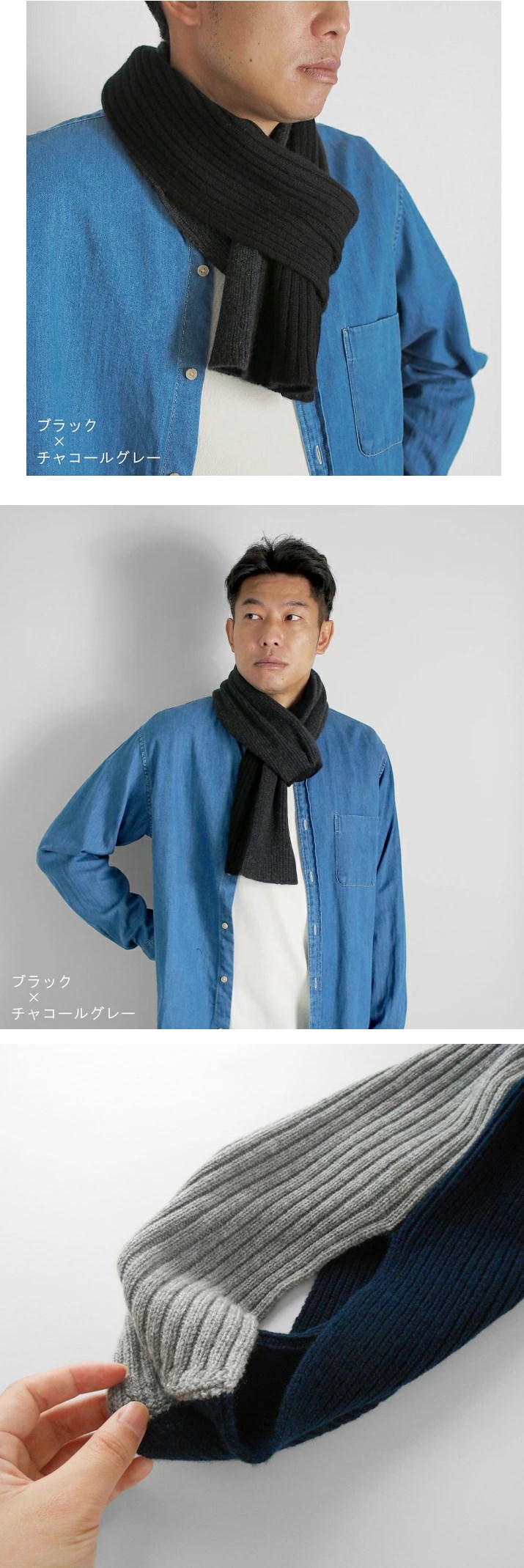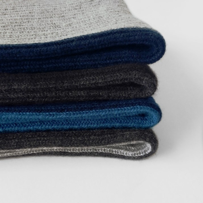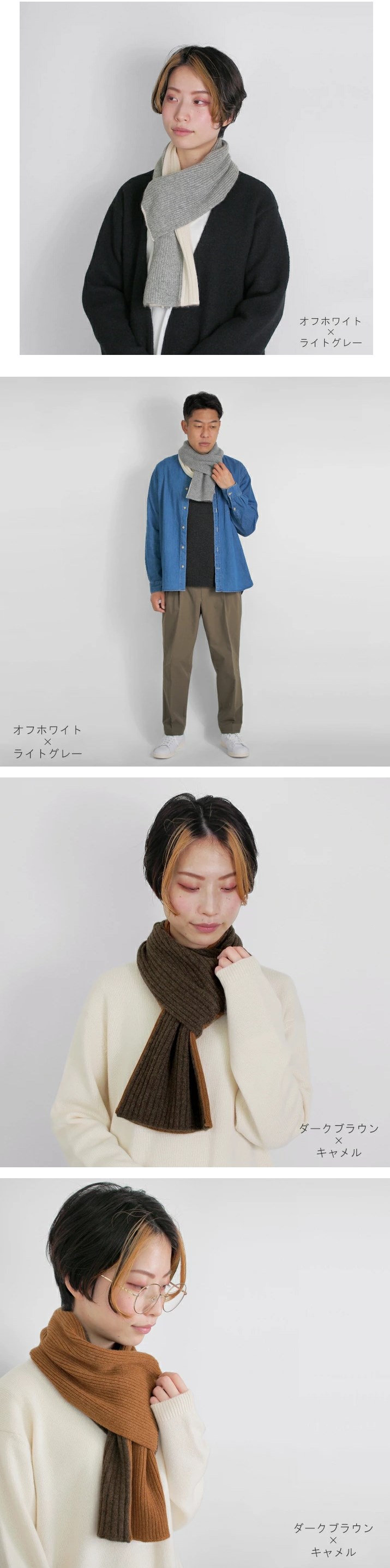 暖表側と裏側の色を変えているため、リバーシブルで使うことができます。巻いたときに見える配色がポイントです。