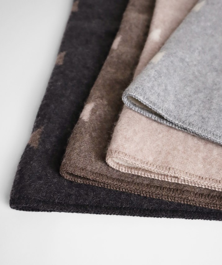 カシミヤ100%ウロコ柄ブランケットはプロディガルでしか手に入らないオリジナル商品です。全4色のカラーバリエーションの中からお気に入りの一枚もきっと見つかるはず。