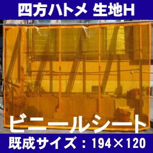 透明ビニールシート 防炎 耐電 防虫 抗菌シート:四方ハトメタイプ:生地H 透明オレンジ格子柄 巾194cm×丈120cm ハトメ6×4 間仕切り 防寒 雨・風・花粉よけ