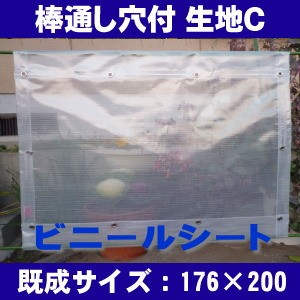 透明ビニールシート 防炎シート:棒通し穴付タイプ:生地C 外からみえにくい細かい格子柄 巾176cm×丈200cm ハトメ4×5 間仕切り 防寒 雨・風・花粉よけ