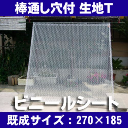 透明ビニールシート 防炎 耐寒用-30℃異常なしシート:棒通し穴付タイプ:生地T 大きい格子柄 巾270cm×丈185cm ハトメ7×4 間仕切り 防寒 雨・風・花粉よけ