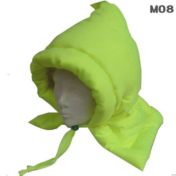 品名:M08小学生用防災頭巾 Mサイズ 表地:難燃ツイルエンゼル蛍光 裏地:綿水色