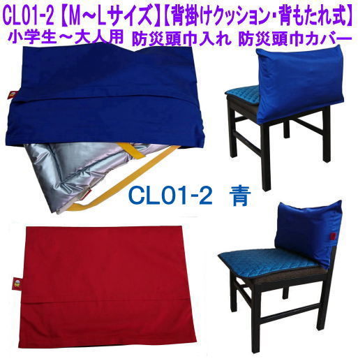CL01-2【M〜Lサイズ用】防災頭巾入れ 防災頭巾カバー T/Cカバー 背掛けクッション式 背もたれ式 座布団式 青 小学生〜大人用 防災頭巾カバー