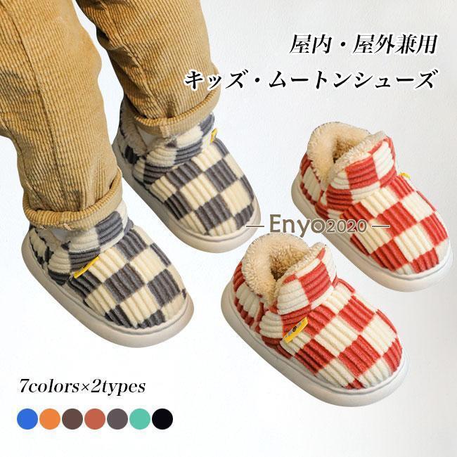 ムートンスリッパ 子供 ルームシューズ 裏起毛 男の子 女の子 ムートンシューズ チェック柄 スリッパ ムートン 屋内屋外兼用 ボアスリッパ 冬スリッパ