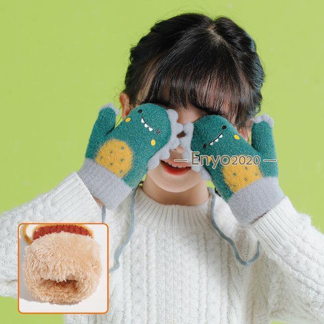 手袋 キッズ 手袋 防寒 ジュニア 子供 冬 裏起毛 紐付き ボア手袋 ダイナソー柄 恐竜 ニット 女の子 男の子 冬 暖かい もこもこ ふわふわ 可愛い 防寒対策 プレゼント ギフト 冬新作 おしゃれ