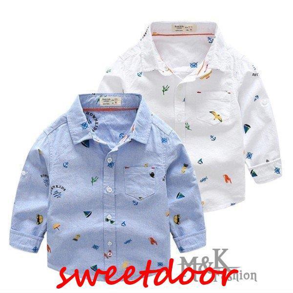 キッズ 男の子 ベビー 長袖 シャツ 前開き 子供服 男の子 トップス 春秋 子供シャツ カジュアル 可愛い 通学着 通園着 お出かけ 子供服 全2色 90-130cm