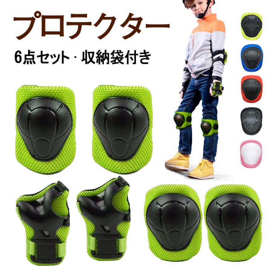 プロテクター スケボープロテクター キッズ 自転車 6点セット プロテクター 子供用 膝肘手首 保護パッド メッシュポーチ付き インラインスケート プレゼント