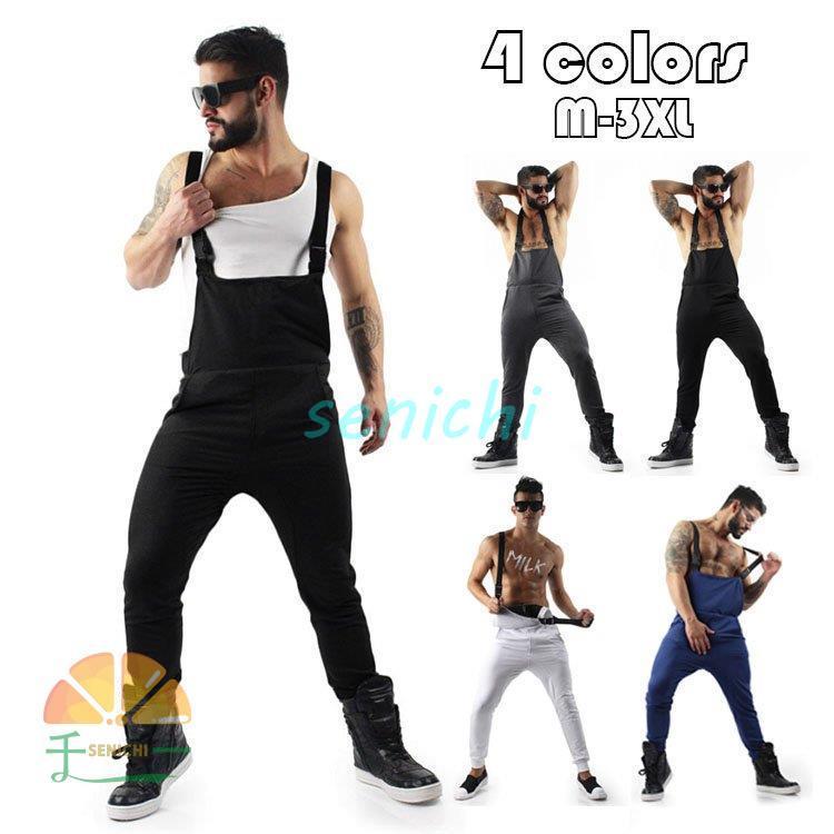 オーバーオール メンズ 無地 ロングパンツ サルエルタイプ オールインワン サロペット ボトムス 春夏秋 新作 お洒落 男性 カジュアル おしゃれ 大きいサイズ 4色