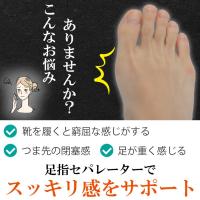 足指と足指の間に空間をつくり、ソフトに間隔を広げ、足の摩擦による不快な衝撃や痛みを防止します。