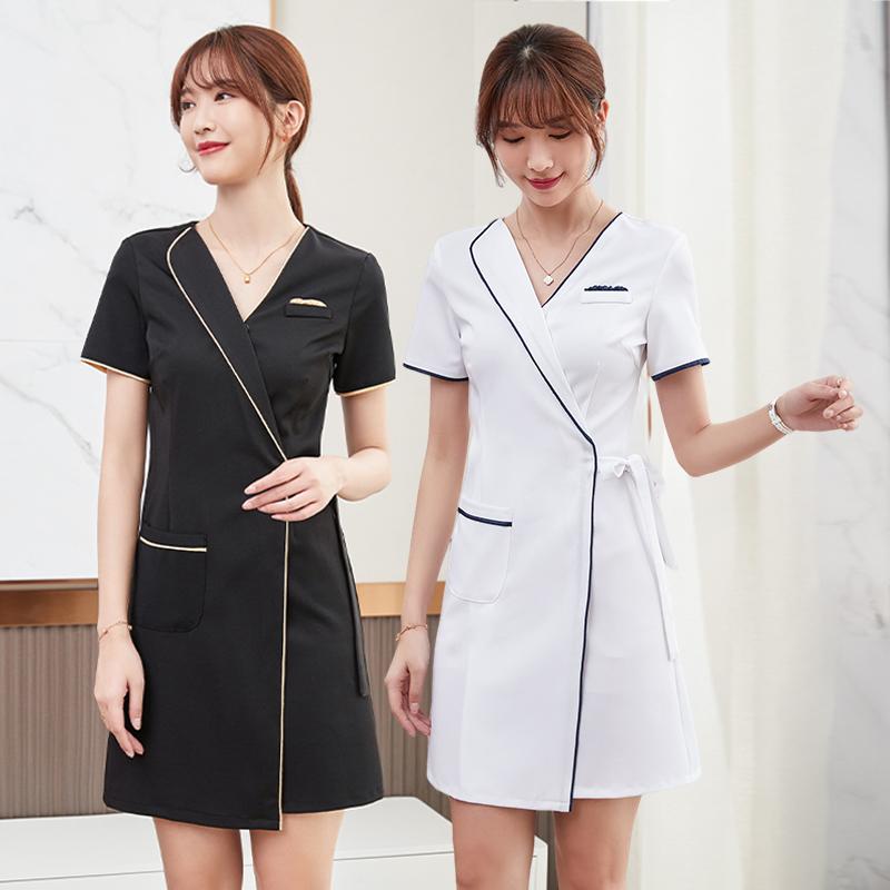 ユニフォーム エステ レディース サロン Vネック ワンピース 通勤 美容 制服 おしゃれ サロンウェア マッサージ 歯科 ホテル 保育園 介護士