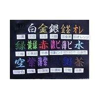 | 特徴 | ネーム刺繍 10文字までお入れします。 (1)書体 行書体、楷書体、丸ゴシック のいずれか。 (2)糸色 黒、白、金、銀、金茶、オレンジ、緑、 黄緑、赤、濃いピンク、さくらピンク、 水色、空色、紫、薄紫、濃紺、紺、茶 より選択 (3)マーク側にお名前、反対側に所属団体名が入ります。 一文字サイズは基本 2.8cm×2.8cmです。それより大小する場合はご指示ください。 裏抜け有り刺繍ですが、裏の糸は黒を使用して、裏抜け無しタイプに近づけています。 |