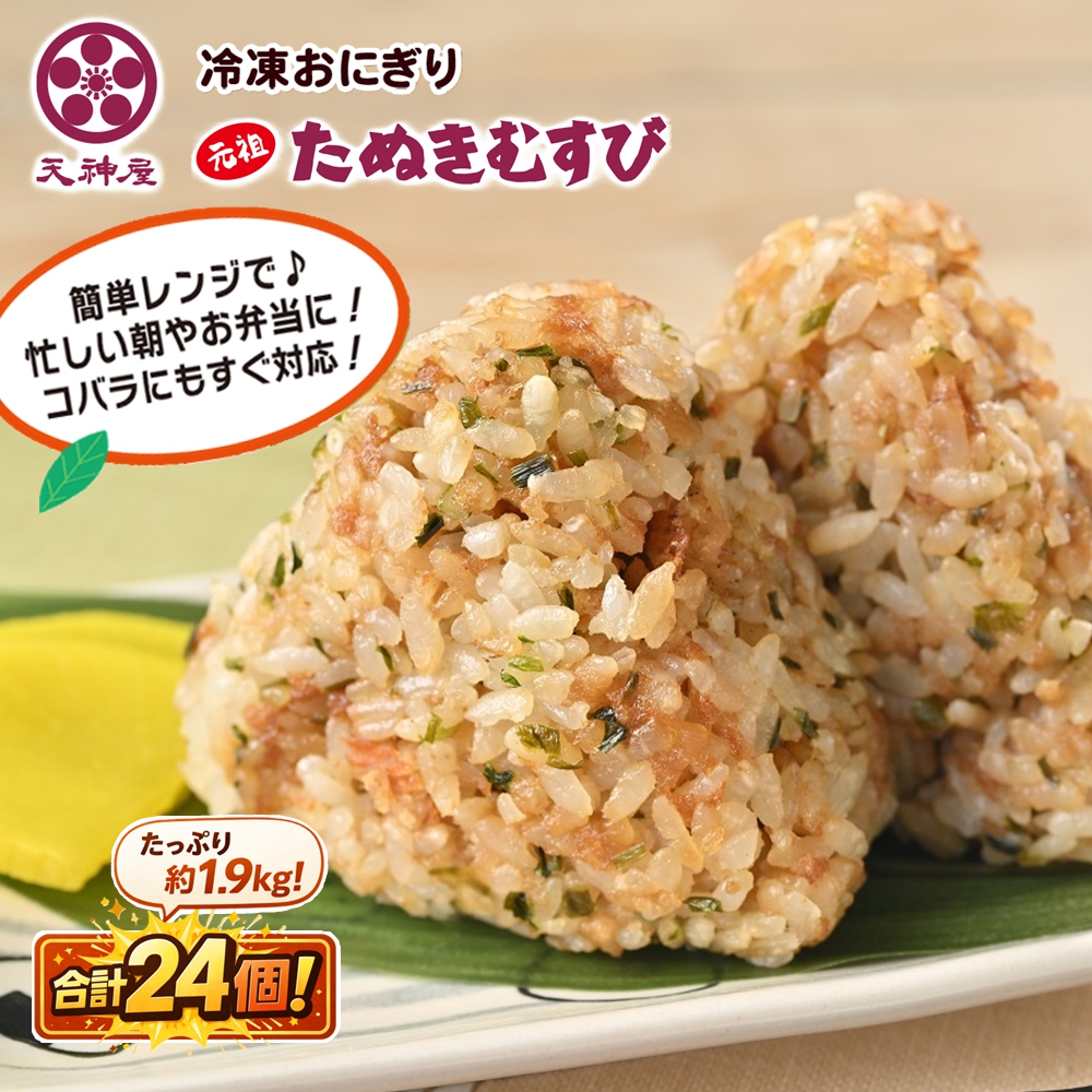 | 天神屋の看板メニュー「たぬきむすび」を冷凍食品で再現しました。 「元祖たぬきむすび」とは、醤油とネギの風味が、天かすとごはんに染み込んだおむすびです。 一度食べたらやめられない、その静岡の味わいをぜひご堪能ください。 【調理方法】 凍ったままの商品を袋から取り出し、内装ごと電子レンジで温めてください。 |