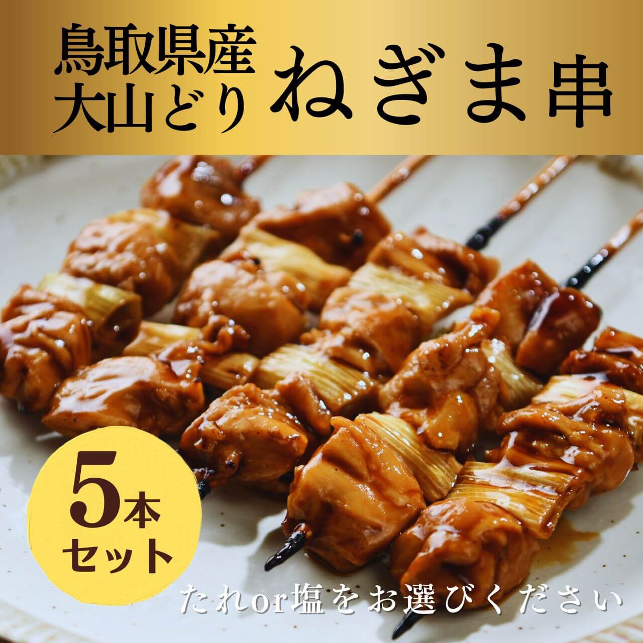 大黒堂のねぎまは鳥取県内の食材のみで作りプリプリのお肉とシャキシャキのネギが合わせて楽しめる焼き鳥5本セットです。