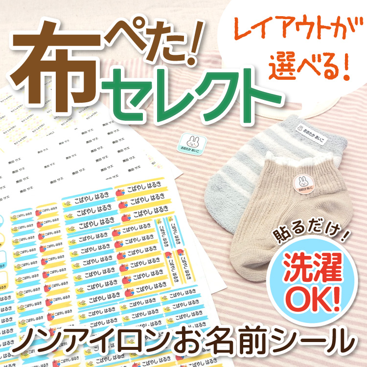 お名前シール 布用シール セレクト 布ぺたっ デザインが選べる サイズが選べる ノンアイロン カスタム 洗濯OK 入園入学準備 耐水 防水@