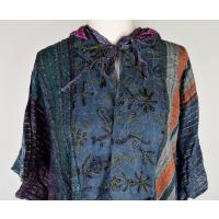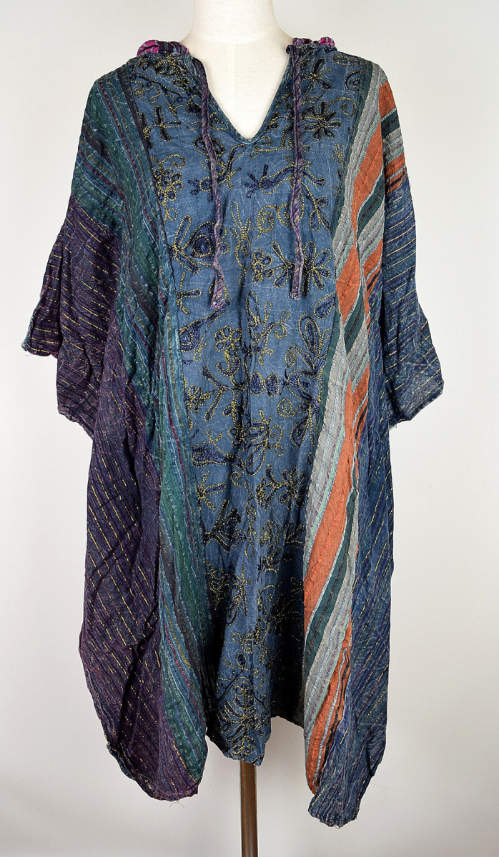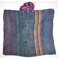ストライプ パッチワーク アジアン ポンチョ アウター エスニック 送料込み 1点物 フード付き 婦人 送料無料 マント