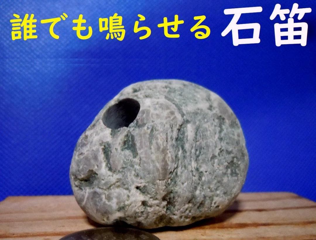 【薬石苑】誰でも鳴らせる宮崎ヒスイ海岸の石笛・岩笛・蓬緑 86g
