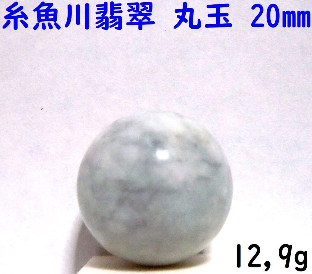 糸魚川翡翠 天然手造り 丸玉 径≒20mm ≒12,9g