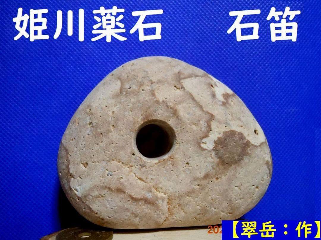 【薬石苑】誰でも鳴らせる石笛・岩笛・姫川薬石・良形・特上模様【翠岳:作】372g